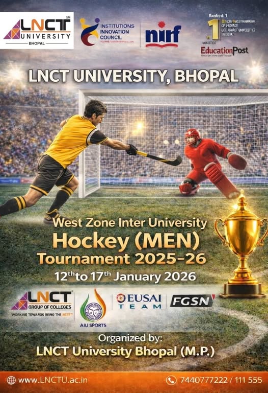 LNCT University, Bhopal is pleased to organize the West Zone Inter University Hockey (Men) Tournament 2025–26 from 12th to 17th January 2026. We welcome all