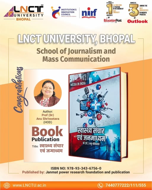 We are proud to share that Prof. (Dr.) Anu Shrivastava professor and head from school of journalism and mass communication LNCT University Bhopal has successfully