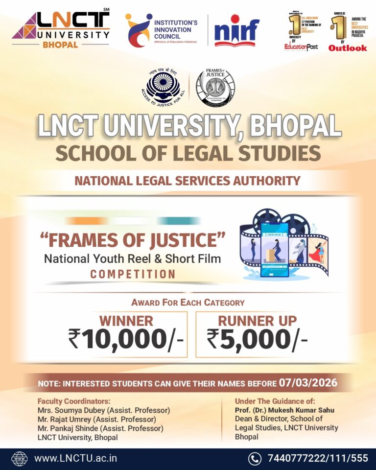 Your story can inspire justice! Join Frames of Justice – National Youth Reel & Short Film Competition by LNCT University, Bhopal. Register before 07 March