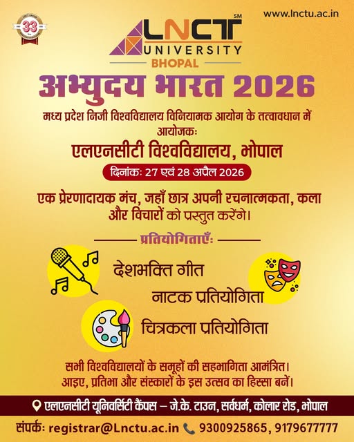 LNCT University, Bhopal द्वारा आयोजित एक भव्य मंच जहाँ प्रतिभा, कला और रचनात्मकता का होगा संगम! देशभक्ति गीत | नाटक प्रतियोगिता | चित्रकला प्रतियोगिता आइए,