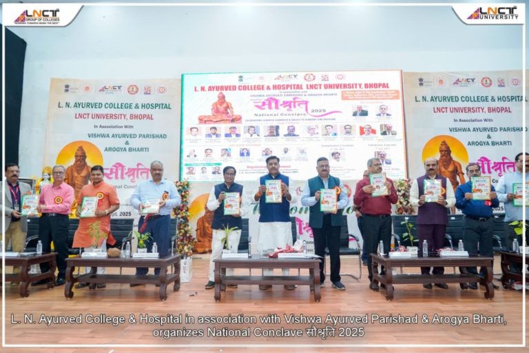 एल.एन. आयुर्वेद कॉलेज एवं हॉस्पिटल, एल.एन.सी.टी. यूनिवर्सिटी, भोपाल द्वारा विश्व आयुर्वेद परिषद एवं आरोग्य भारती के सहयोग से भव्य राष्ट्रीय सम्मेलन – “सश्रुति 2025” का