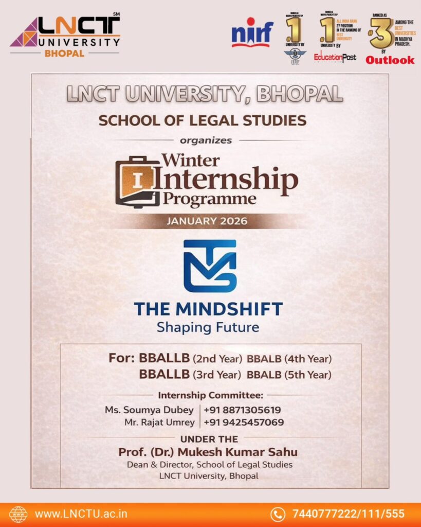 The School of Legal Studies proudly announces the Winter Internship Programme – January 2026 in collaboration with *MindShift – Shaping the Future*.